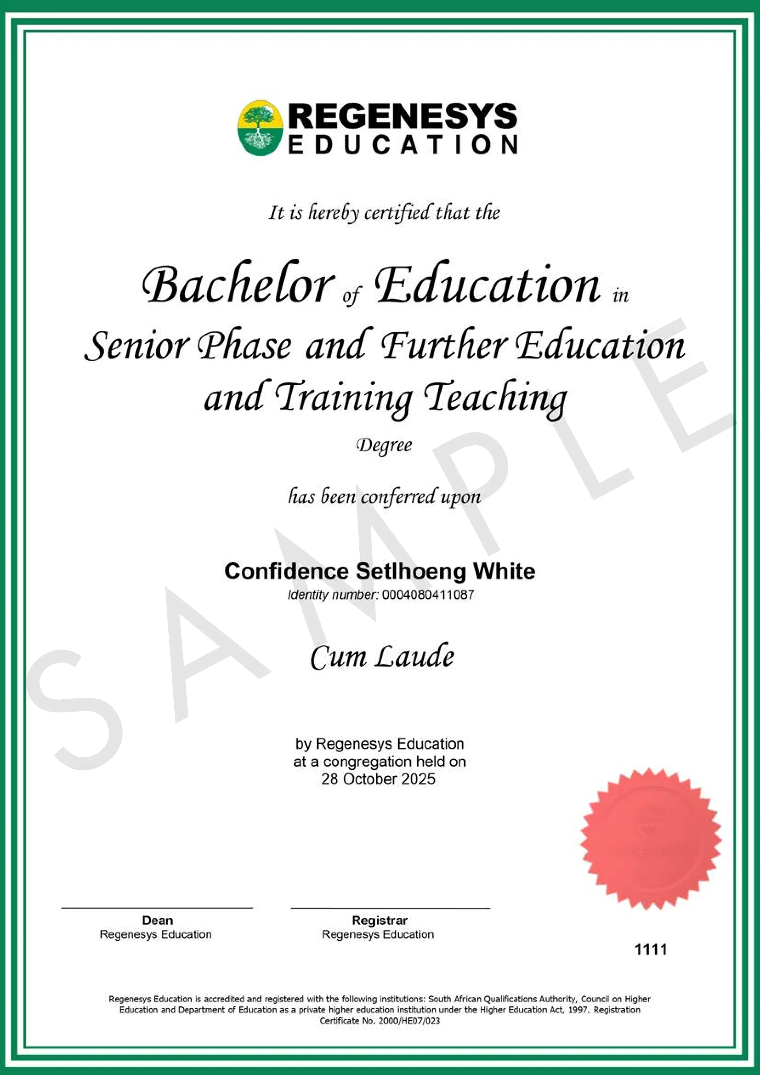 Regenesys School of Education provides a supportive, academically grounded learning environment that prepares aspiring teachers for South African classrooms. By combining theoretical knowledge, applied learning, and continuous mentorship, Regenesys helps you develop the practical skills and professional judgement needed for real-world teaching.