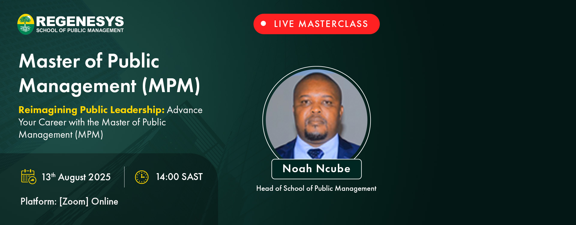 The online classes I attended for the Postgraduate Diploma in Public Management have truly uplifted my leadership skills. Regenesys is very professional, providing a supportive and engaging learning environment. I highly recommend it for anyone looking to enhance their abilities and advance their career