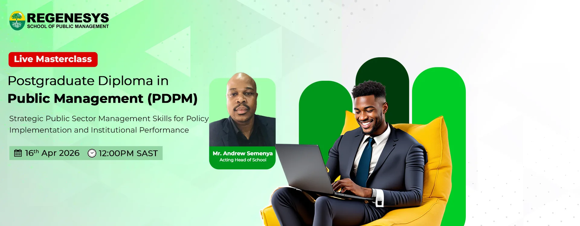 The online classes I attended for the Postgraduate Diploma in Public Management have truly uplifted my leadership skills. Regenesys is very professional, providing a supportive and engaging learning environment. I highly recommend it for anyone looking to enhance their abilities and advance their career