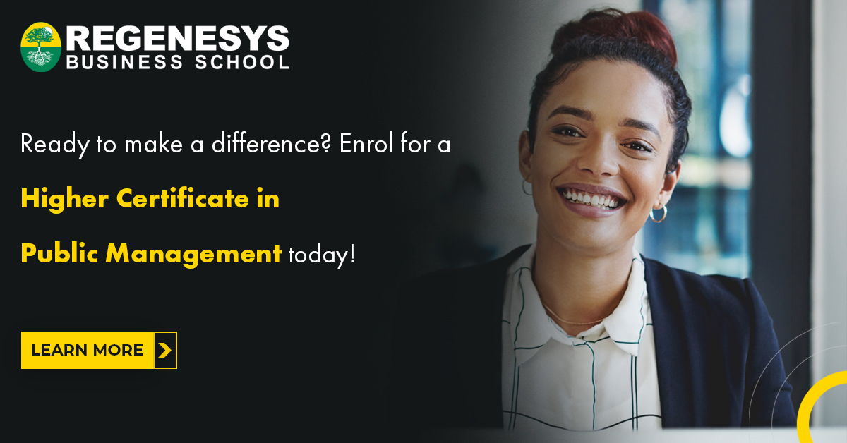 If you are keen to make a difference by helping to improve service delivery or would just like to advance your career in government, public management will be a good career choice for you. You will be equipped to contribute to the professionalisation of South Africa’s public service, state-owned entities, Chapter 9 institutions, and nongovernment organisations through your public management studies, particularly if you do so through Regenesys School of Public Management.