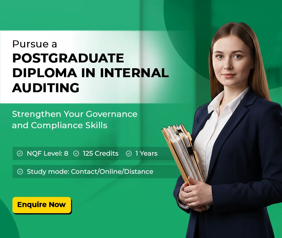 If you are looking for a reputable institution in South Africa to pursue a programme specialising in internal auditing, consider Regenesys. It offers a 1-year Postgraduate Diploma in Internal Auditing programme.